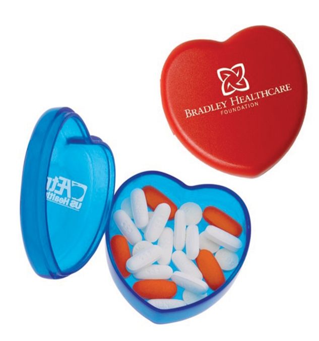 A little love goes a long way. Show your clients you care with a heart-shaped pill case! Easy to use and store, the heart shape pill case can carry a variety of pills, big and small. Ideal for hospitals, schools, and more.